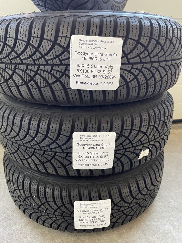 185/60R15 Goodyear UG 9+ Incl. Velgen & Wieldoppen VW Polo 6R